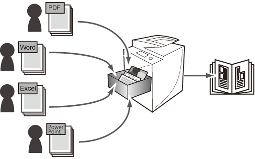 This section describes the procedure for storing files which are created with different applications in the mail box, and making a booklet with page numbers.