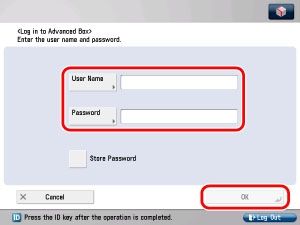 If the Log In screen is displayed, enter the user name and password → press [OK].