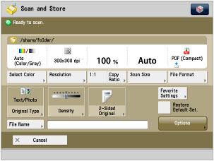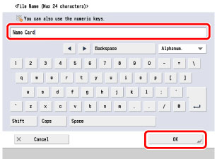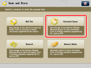 Store the scanned business card in the Advanced Space of the machine, the Advanced Space of another machine on the network, or the memory media.