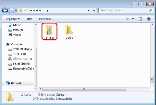 Press [Start] → [Program] → [Accessories] → [Windows Explorer] →enter the following path in [Address]. (case sensitive)