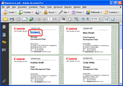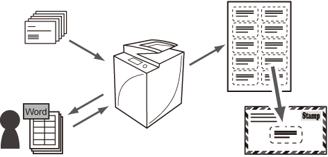 By performing the OCR (Text Searchable) function, you can convert scanned business cards into PDF or XPS which is text searchable. The Searchable PDF or XPS mode is useful in various situations. This section explains how to create address labels using [Mail Merge] function of Microsoft Word 2003.