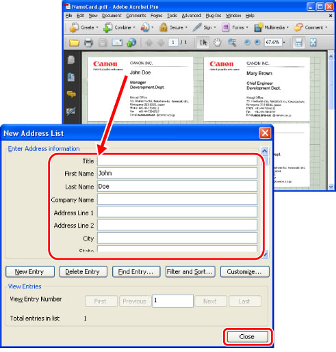 Copy necessary texts from the searchable PDF file into the [New Address List] dialog box to create an address list.