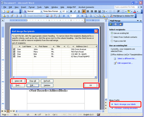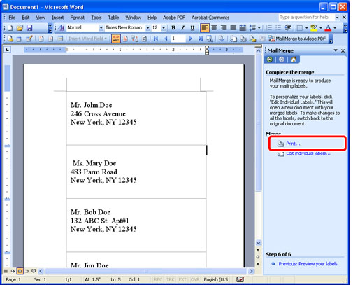 Creating Address Label Data by Copying Texts from the PDF to Microsoft Word