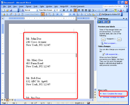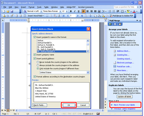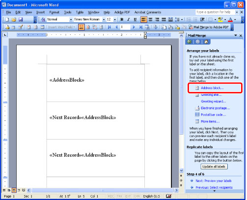 Creating Address Label Data by Copying Texts from PDF to Microsoft Word