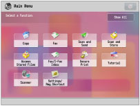 The imageRUNNER ADVANCE enables you to customize the screen display of the touch panel display. By placing buttons for frequently used functions in a visible position, or creating a shortcut keys for combinations of functions that are frequently used, you can increases the efficiency of operations.