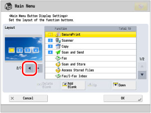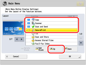 Repeat step 4 to move [Scan and Store] to <2> position, [Fax] to <3> position, and [Secure Print] to <4> position.