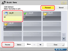 For instructions on entering the button name and comment, see "Registering a Personal Button/Shared Button."