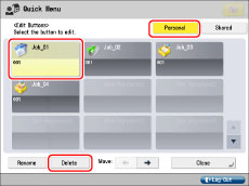 The Administrator can delete the button information by logging in to the User Setting Information Management Service page from the Web browser. (See "User Setting Information Management (User Setting Information Management Service).")