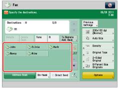 To use this feature, you must first register destinations in one-touch buttons. (See "Storing/Editing/Deleting One-Touch Buttons.")