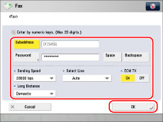 If you want to attach a subaddress to your send job, make sure that the recipient's fax machine supports ITU-T (International Telecommunication Union - Telecommunication Standardization Sector) standard subaddresses. (See "Sending with a Subaddress.")
