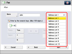 Press the drop-down list → select an address list from Address List 1 to 10.