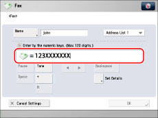 Enter the recipient's fax number using