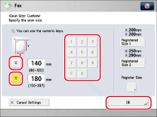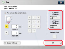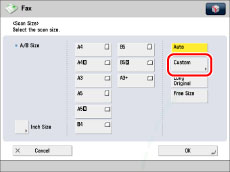 If you send a fax in the Direct Sending or Manual Sending mode and place your originals in the feeder, the Scan Size setting that you specify will not be used.
