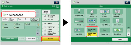 Specify the destination → press [Options] → [Sender Name (TTI)].