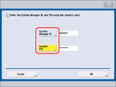 Select [System Manager Mode] → enter <System Manager ID:> and <System Manager PIN:> → click [Log In].