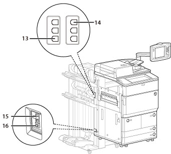 Flashes or lights if there is an error in the machine. When the Error indicator flashes, follow the instructions that appear on the touch panel display. When the Error indicator maintains a steady red light, contact your local authorized Canon dealer.