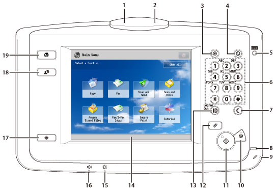 Includes the keys, touch panel display, and indicators required for operating the machine. (See "Control Panel Parts and Functions.")