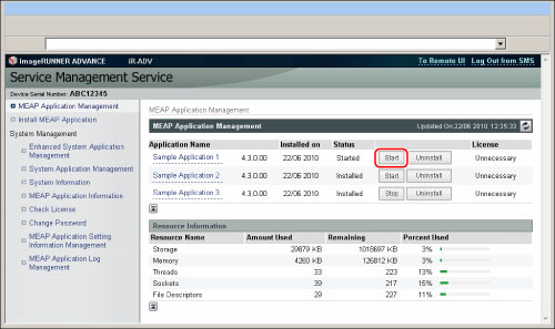 When the resources required for memory, threads, sockets, or file descriptors has run out, the application will not start, even if you click [Start].
