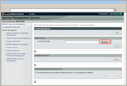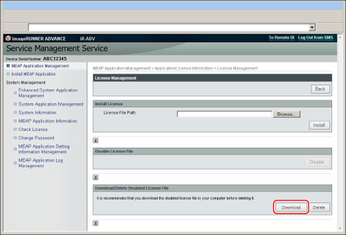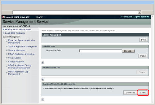 If you want to uninstall an application, you must first delete the license file. Also, if you want to back up before deleting, download and store the license file on your computer.