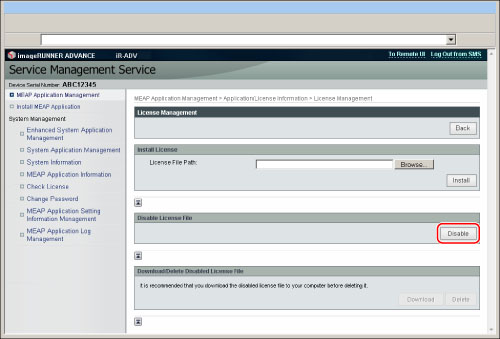 When a disabled license file is generated, the status of that license file becomes <Uninstalled> and the application becomes unusable.