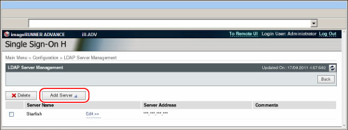 You can click [LDAP Server Management] only if you select [Server Authentication + Local Device Authentication] for [User Authentication System] and [LDAP Server] for [Authentication Server Type].
