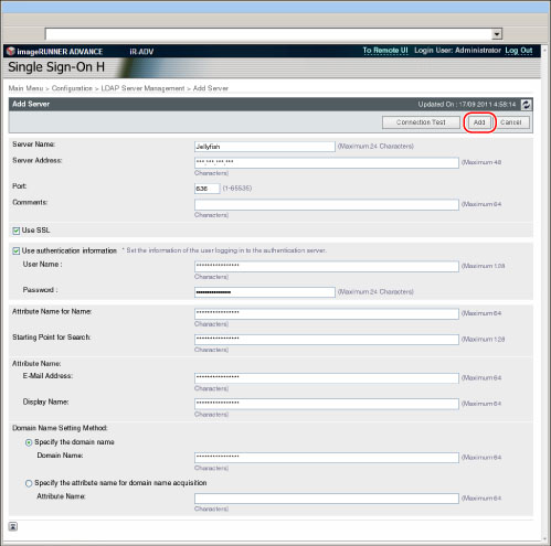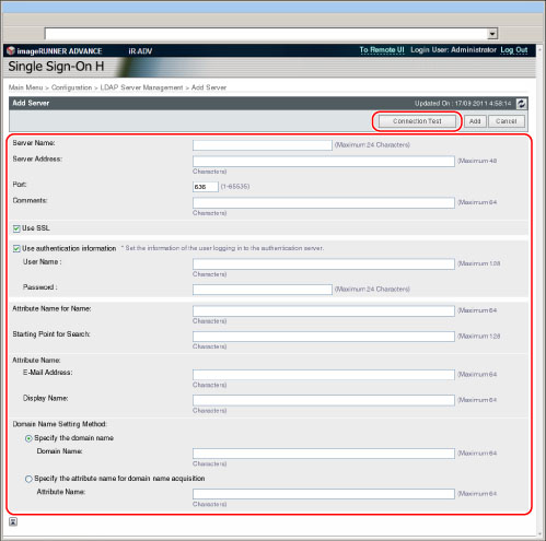 Enter the LDAP server Administrator DN registered on the LDAP server.