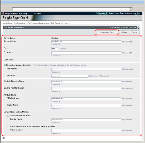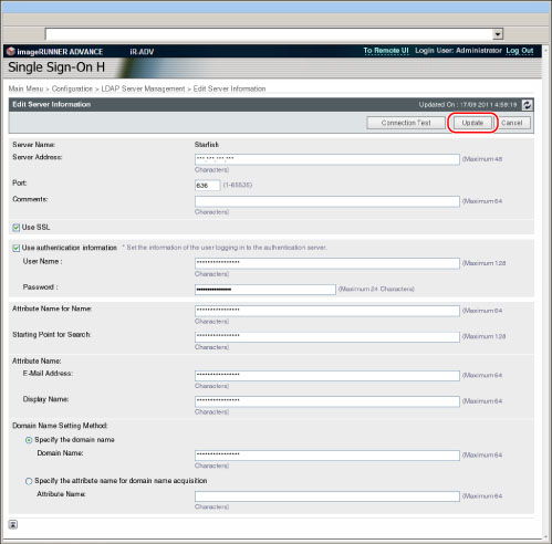 Make sure to set any value except [Comment], [Starting Point for Search], and [Domain Name Setting Method] ([Domain Name] and [Attribute Name]).