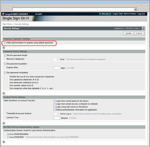 If the password has expired, the screen for changing the password appears, regardless of this setting.