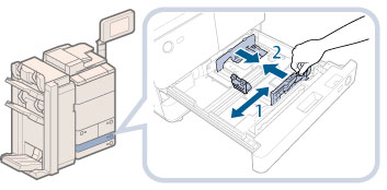 Slide the front guide until it clicks into place. If the front guide is not adjusted properly for the paper size loaded in the paper drawer, the correct paper size may not appear on the touch panel display.