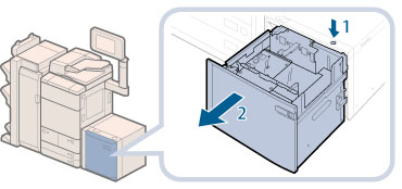 2. Open the paper deck unit.The inside lifter automatically descends to the paper loading position.