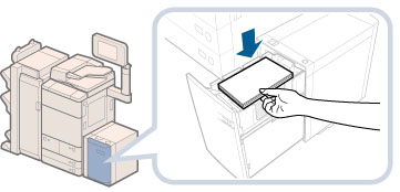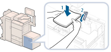 Load the paper stack in stages, adding approximately 550 sheets of paper at a time. If the Paper Deck Unit-C1 or POD Deck Lite-A1 can accommodate more paper, the lifter will descend.