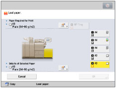 If a message prompting you to load paper appears during printing, the remaining prints are automatically made after you load the correct paper. If you select a different paper source, the remaining prints are made after you press [OK].