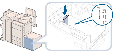 Make sure to align the inner size change plate properly with the marks for the desired paper size. There are two locations with marks for the paper size on the top of the inner size change plate. Align the inner size change plate with the desired marks.