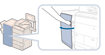 When closing the front cover of the finisher, be careful not to get your fingers caught, as this may result in personal injury.