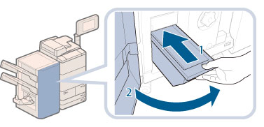 Take care when handling the optional equipment that is attached to the machine. When an optional unit's cover is opened to replace a staple cartridge, discard the punch waste/trim waste/staple waste, or clear paper or staple jams, prints may still be output if other optional units are operating normally, and are not involved in the paper or staple jam removal procedure.