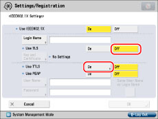 If you set <Use TLS> to 'On', you cannot set <Use TTLS> or <Use PEAP>.