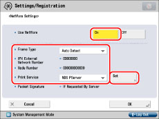 Press [On] for <Use NetWare> → specify the following items → press [Set].