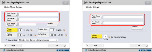 In [File Server Name], enter the name of the file server to which the desired print server belongs → in [Print Server Name], enter the name of the desired print server.