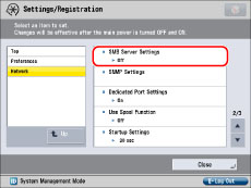 Press [Preferences] → [Network] → [SMB Server Settings].