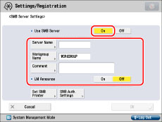 Press [Off] for <Use SMB Server> if you do not want to use the SMB server.