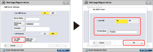 Press [Set SMB Printer] → specify the SMB printer settings → press [OK].