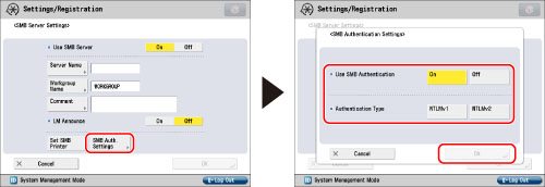 Press [SMB Auth. Settings] → specify the SMB authentication settings → press [OK].