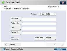 If the language of the touch panel display differs from the computer used as a master browser, [Host Name] and [Folder Path] may not appear correctly, or you may not be able to browse the directories.