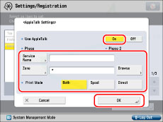 Press [On] for <Use AppleTalk> → specify the following items → press [OK].