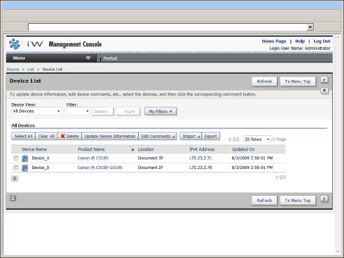 iW Management Console is utility software which enables integrated management of a printing environment.