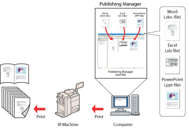 With Publishing Manager, you can create documents efficiently utilizing the features of a Canon machine to the fullest.