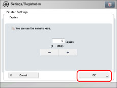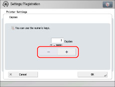 Press [-] or [+] to enter the number of copies.
