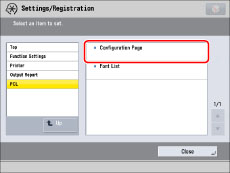 Press [Configuration Page].
