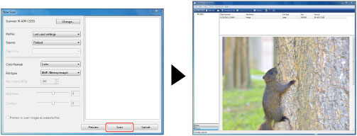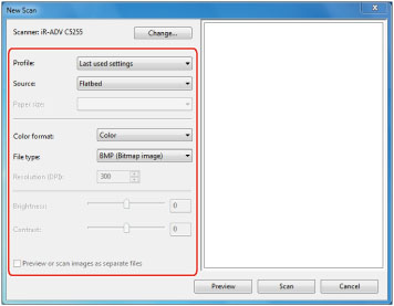 If you click [Preview], the scanned file is displayed, but it is not stored in a computer.