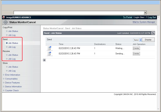 Click [Job Status] → click [Delete] for the job that you want to delete.